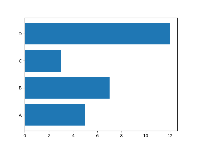 横向きの棒グラフを表示する場合は、pyplot.barh() 関数を用います。