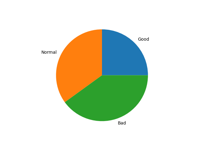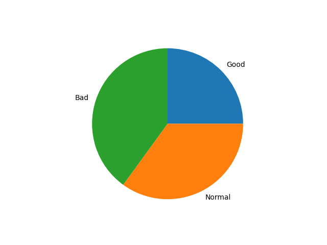 円グラフを表示するには、pyplot.pie() 関数を用います。各要素にラベルをつける場合は、以下のように labels オプションを指定します。