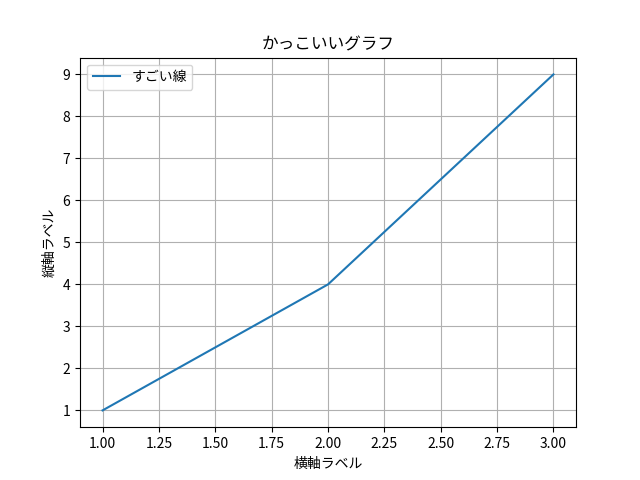 日本語フォントを指定した状態であれば、以下のようにグラフのタイトルや軸ラベルに日本語を使うことができます。